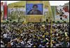 Hezbollah leader Sheik Hassan Nasrallah says Hezbollah members are fighting in Syria against Islamic extremists who pose a danger to Lebanon, confirming publicly for the first time that his men were fighting in Syria. Arabic writing at left reads, "Will not break."ASSOCIATED PRESS Enlarge