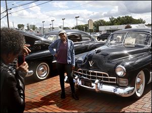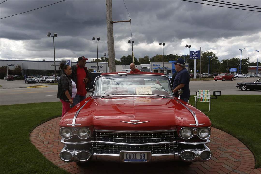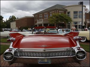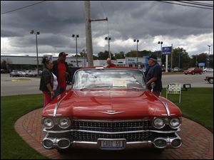 Cadillac enthusiasts, including Rob Vick, of South Toledo, center, snapped pictures of a 1959 convertible owned by Duke Gercke of Berlin Heights.