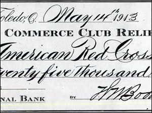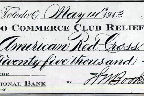 The Great Flood of 1913. This check represented the Balance of the Commerce Club Fnd after all bills had been paid, and after $13,000 in smaller donations had already been sent to Toledo's stricken neighbors.