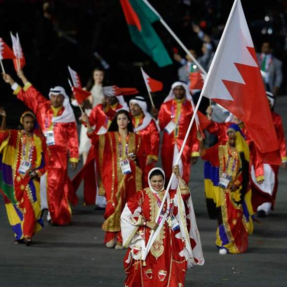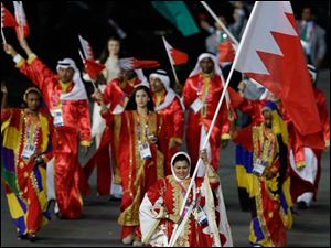 Bahrain's Azza Al Qasimi carries her country's national flag during the Opening Ceremony at the 2012 Summer Olympics.