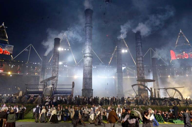 Actors perform during an enactment of the Industrial Revolution at the Opening Ceremony at the 2012 Summer Olympics.