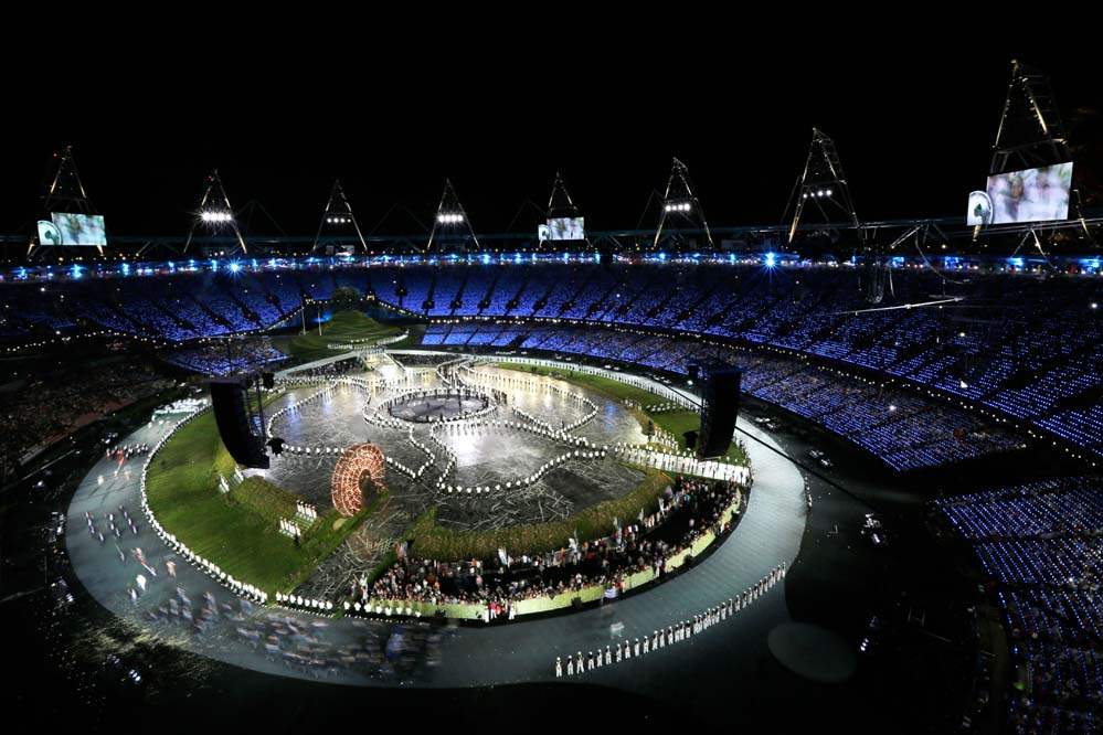 Artists perform during the Opening Ceremony at the 2012 Summer Olympics.