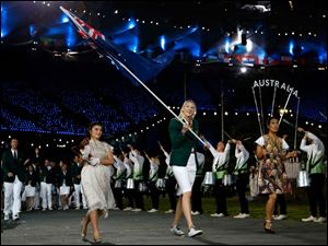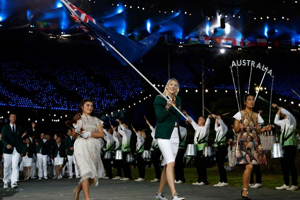 Australia's Lauren Jackson carries the flag during the Opening Ceremony at the 2012 Summer Olympics.