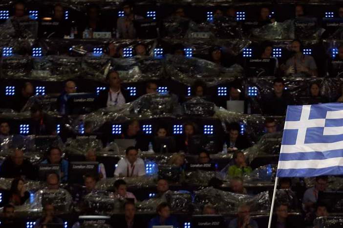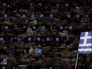 Greece's Alexandros Nikolaidis carries the flag during the Opening Ceremony at the 2012 Summer Olympics.