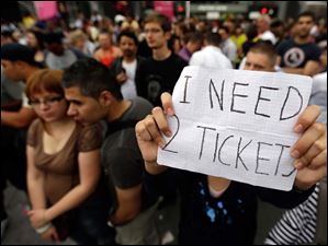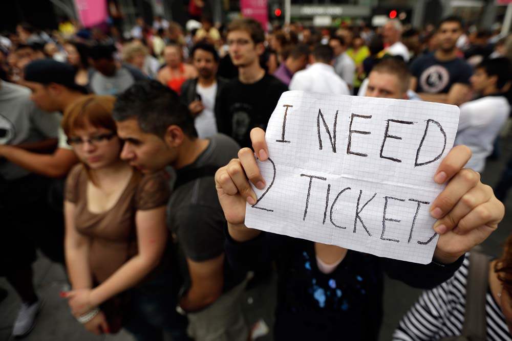 Irene Gonzalez, 13, of Madrid, holds a sign outside the Olympic Park at the Westfield mall ahead of the 2012 Summer Olympics Opening Ceremony.