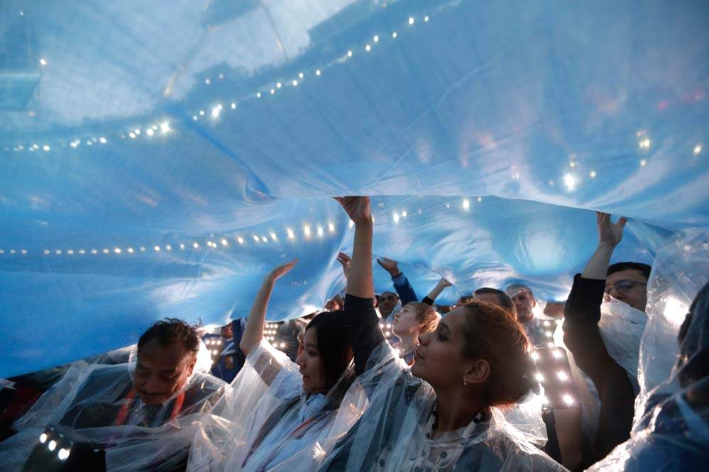 Performers gather during the Opening Ceremony at the 2012 Summer Olympics.