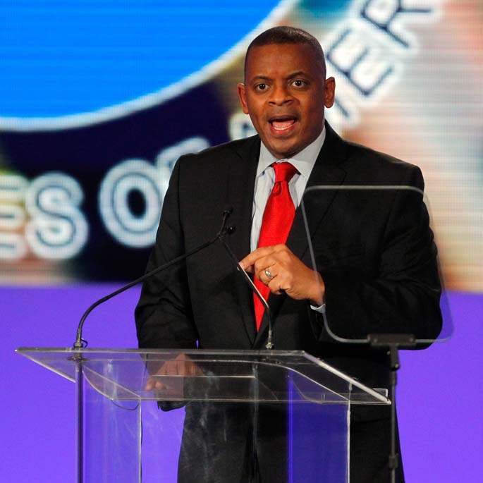 United States Department of Transportation Secretary Anthony Foxx speaks at the North American International Auto Show in Detroit.