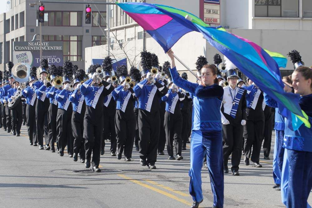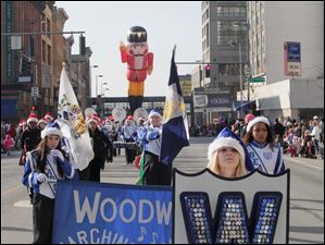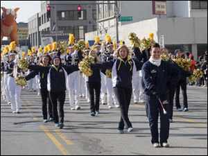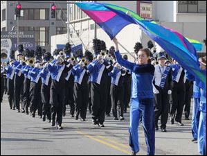 CTY parade18p The Scott High School Marching Band leads the parade. The 25th Anniversary Holiday Parade with Grand Marshall Olympic silver medalist and Toledo native Erik Kynard- along with Toy Story characters in Toledo, Ohio on November 17, 2012. The Blade/Jetta Fraser