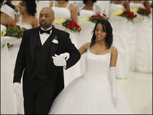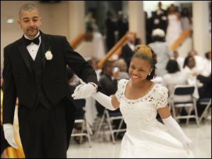 Jerica Stewart and her escort Ron Pettaway dance a waltz.