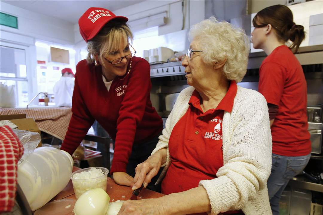 Maxine Haas holds a soft serve ice cream at Pee Wee's. Maxine's parents, Pee Wee and Bertha Haas, started the business.