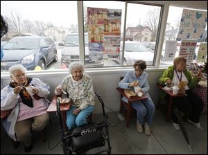 Rita Rehard, from left, Dolores Zernhel, Phyllis Means, and Jeanne Mohler, of Perrysburg, have ice cream treats.