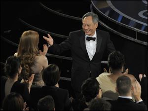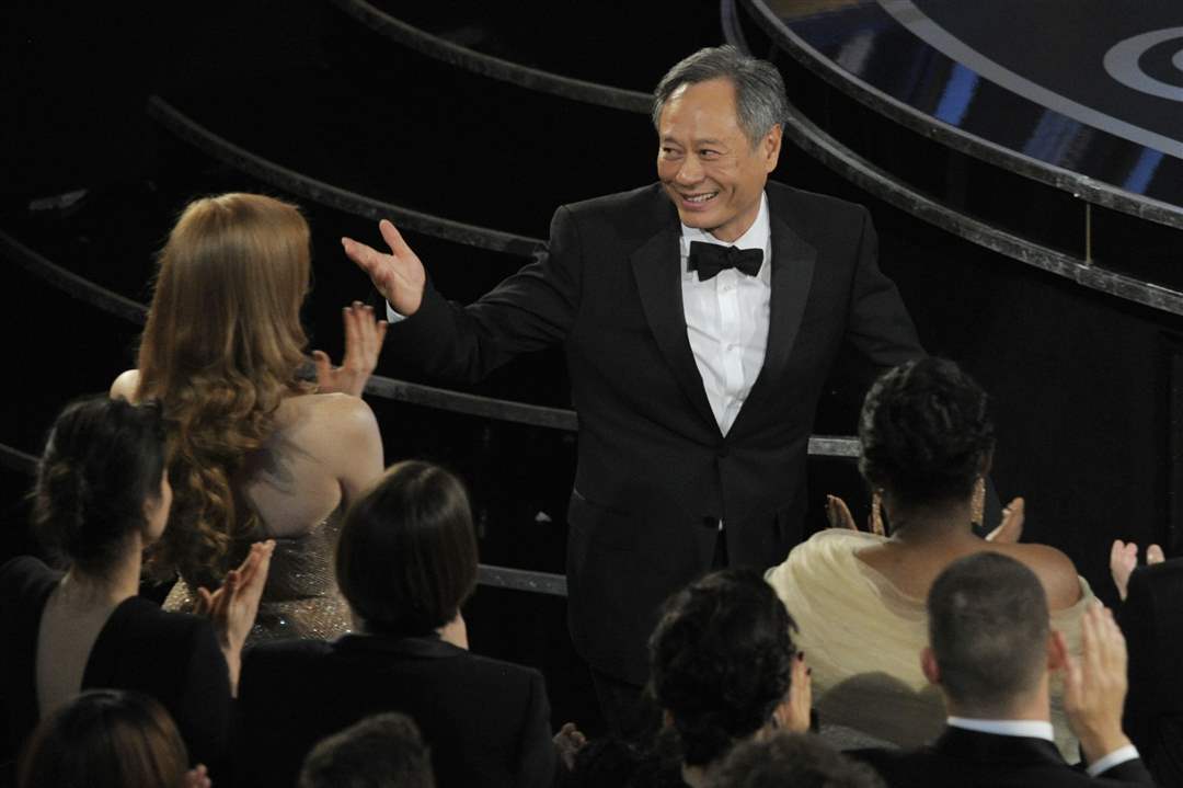 Ang Lee walks on stage to accept the award for best directing for "Life of Pi."