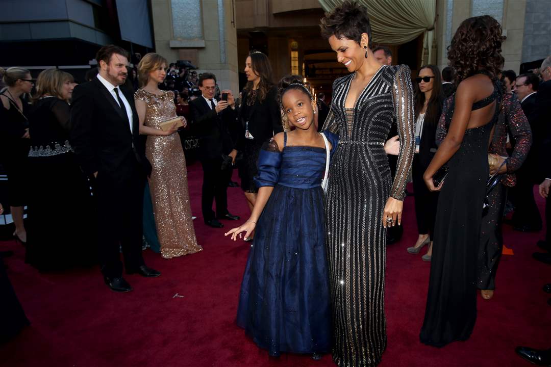 Actresses Quvenzhane Wallis, left, and Halle Berry arrive at the 85th Academy Awards.