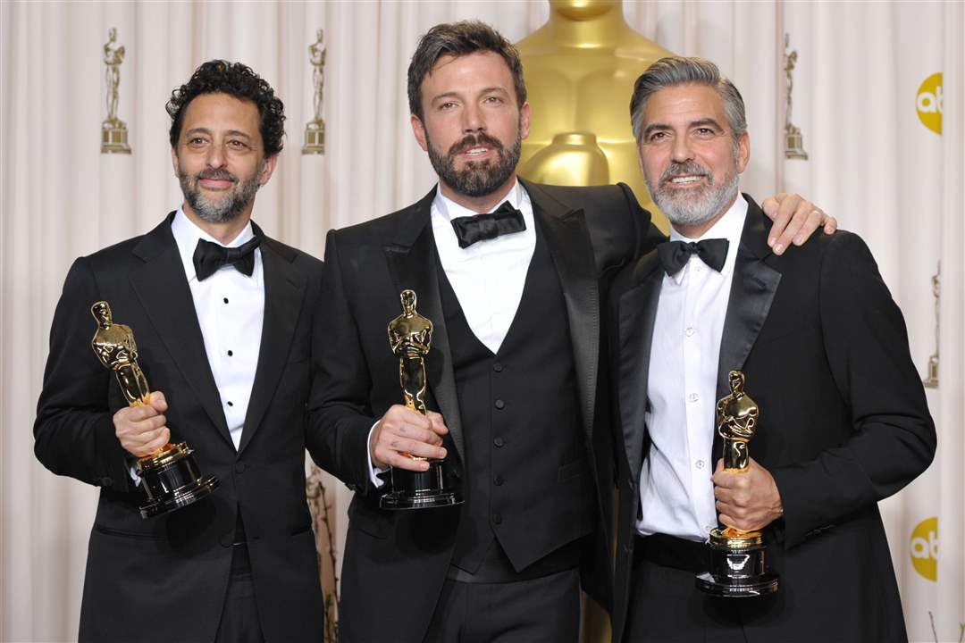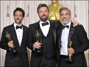 Grant Heslov, from left, Ben Affleck, and George Clooney pose with their award for best picture for "Argo."