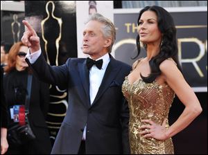 Actors Michael Douglas, left, and Catherine Zeta-Jones arrive at the Oscars.