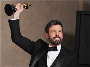 Ben Affleck lifts his Academy Award for best picture for "Argo."