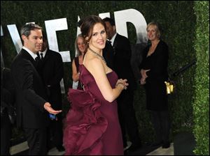 Actress Jennifer Garner displays the back of her dress as she arrives at the 2013 Vanity Fair Oscar party.