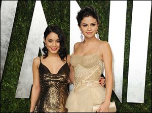 Vanessa Hudgens, left, and Selena Gomez arrive at the 2013 Vanity Fair Oscar Party.