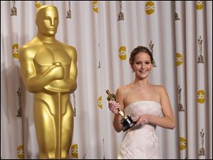 Jennifer Lawrence poses with her award for best actress in a leading role for "Silver Linings Playbook."