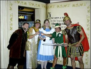 From left, Cliff Upp as a Lord of the Rings character with Pat and Mike Lora, as Virginia Wolf and Ernest Hemingway .
