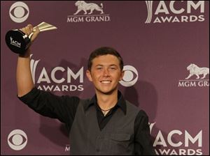 Scotty McCreery poses backstage with the award for new artist of the year at the 47th Annual Academy of Country Music Awards.