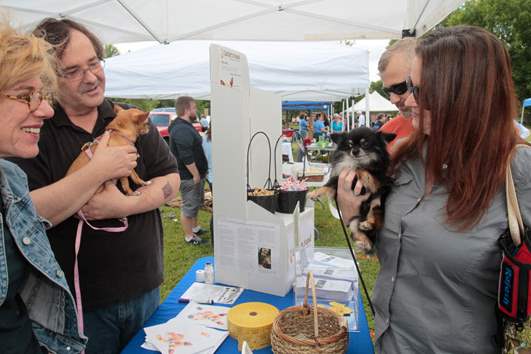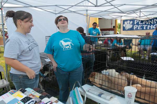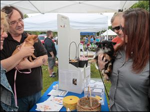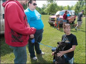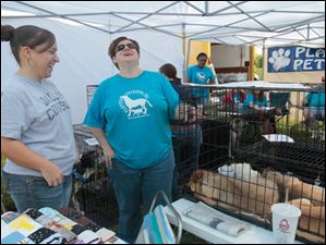 Jackie Johnson,of Toledo, left, speaking with Mona Guinaugh, of Toledo and with Planned Pethood, Inc., about three Shepherd mix puppies available from Planned Pethood, Inc.