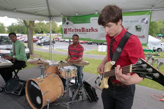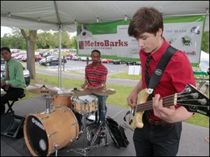 "Half + Half", a trio from the Toledo School for the Arts, in performance at the event. Players are, from left: pianist Shane Russell, drummer Brandon Benson, and bassist Ethan Van Wormer. All live in Toledo. Benson is a 2013 graduate of TSA, Van Wormer and Russell are rising juniors.