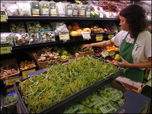 Katherine Fisher stocks local vegetables at the People's Food Co-Op.
