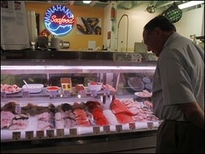 A customer shops for seafood at Monahan's Seafood in Ann Arbor.