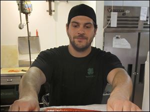 Andrew Kutsomarkos weighs salmon at Monahan's Seafood in Ann Arbor, Mich.