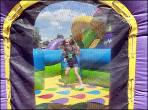 Kendall Taylor, 6, from Toledo, jumps in the bubble.