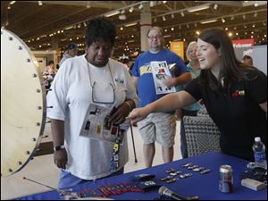Deborah Thomas, of Toledo, 'spun and won' an item from 92.5 KissFM and Sara Hegarty, of the station, right.
