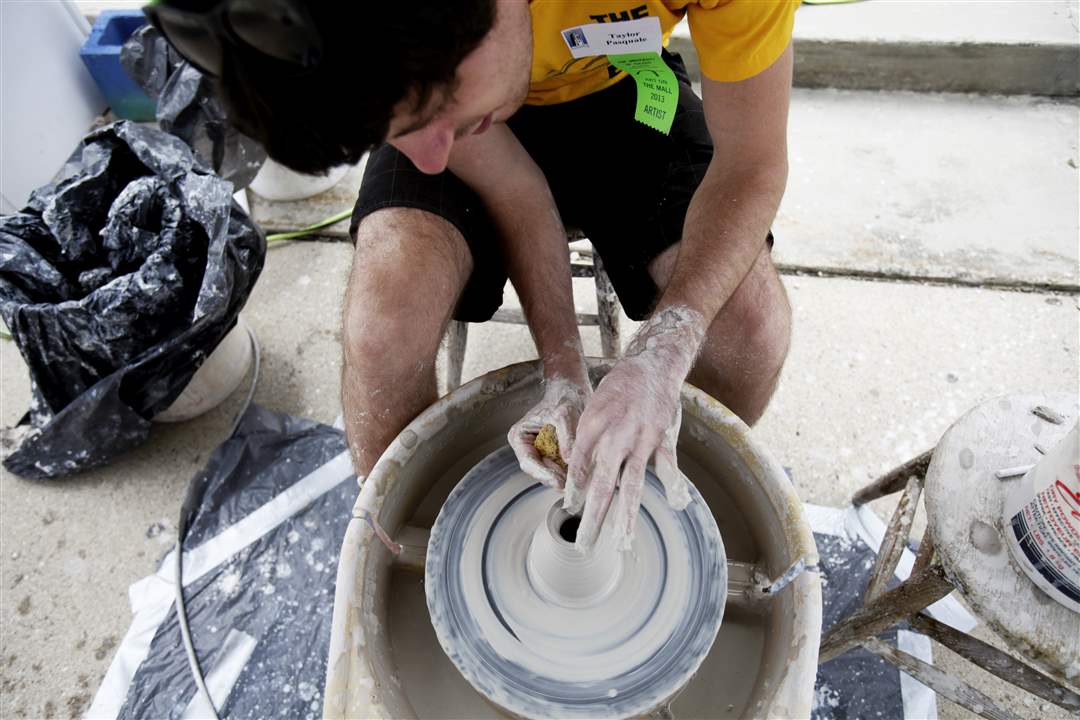 UT senior Taylor Pasquale throws clay on a potters wheel.