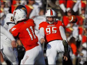 BGSU's Brian Schmiedebusch punts against Kent State during the second half.