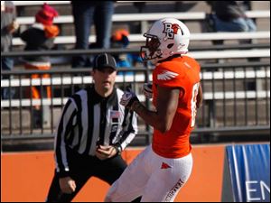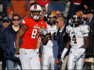 BGSU receiver Chris Gallon runs the ball in for a touchdown.