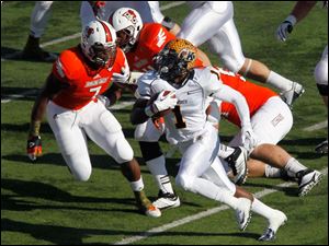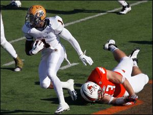 Kent State's Dri Archer escapes the clutches of BGSU defender Ted Oullett.