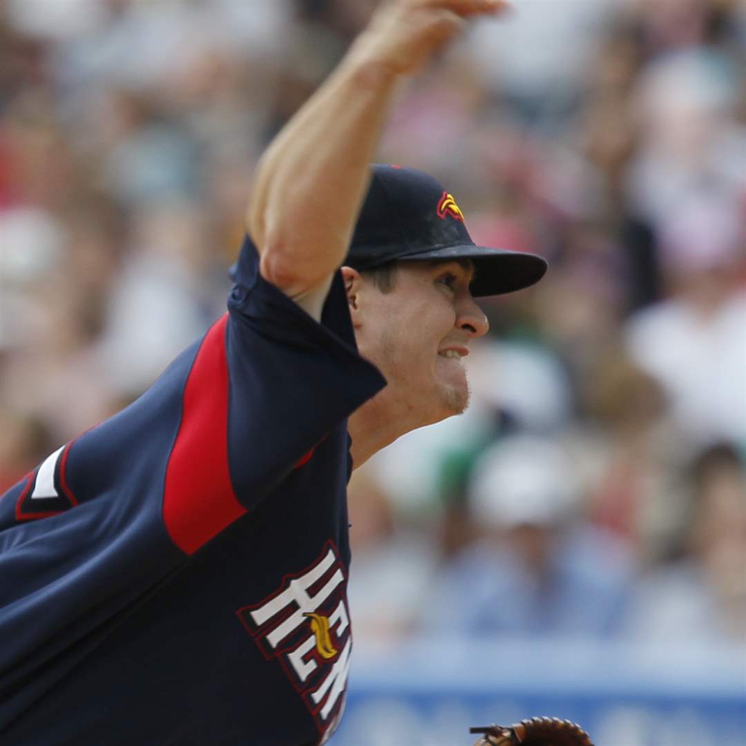 Toledo Mud Hens starting pitcher Thad Weber lobs the ball at the plate.