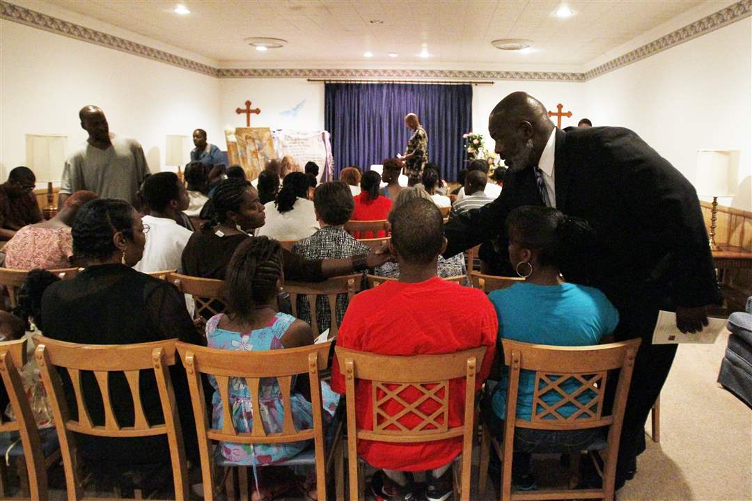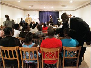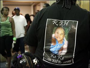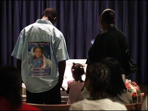 Toledo Mayor Mike Bell pays his respects before a funeral for Keondra Hooks, 1, at Tate Funeral Service, Thursday, August 16, 2012.
