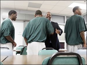 Willie Knighten, the once undisputed leader of the south side Folk, greets inmates from the Correctional Treatment Facility as they come in for his class called "TYRO DAD."