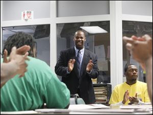 Willie Knighten applauds some of the ideas being discussed in his class.