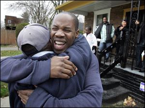Willie Knighten Jr., is greeted by family member Rachelle Roy on Hamilton Street in Toledo after being released from prison, Tuesday, November, 24, 2009. Knighten was once the undisputed gang leader of the south side Folks.