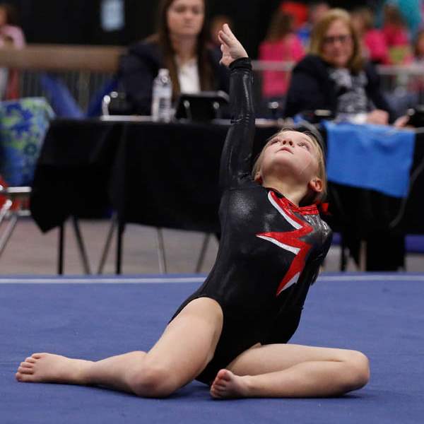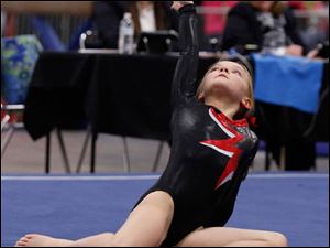 Toledo Turner gymnast Leah Yost finishes her floor routine in front of the judges.
