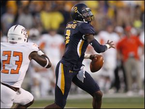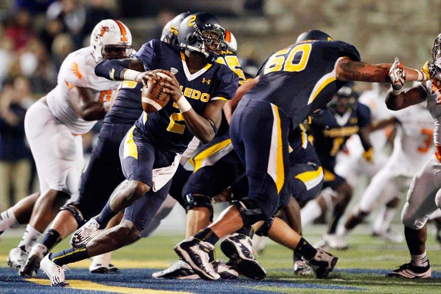 Toledo quarterback Terrance Owens looks to throw against Bowling Green.