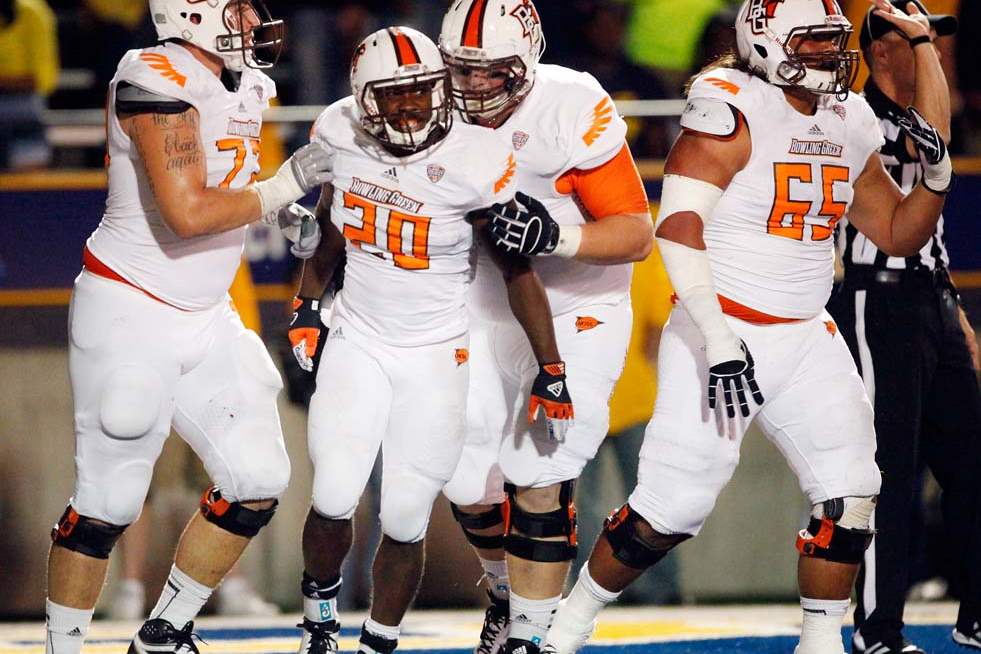 Bowling Green running back John Pettigrew (20) celebrates after scoring a touchdown against Toledo during the fourth quarter.