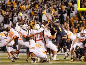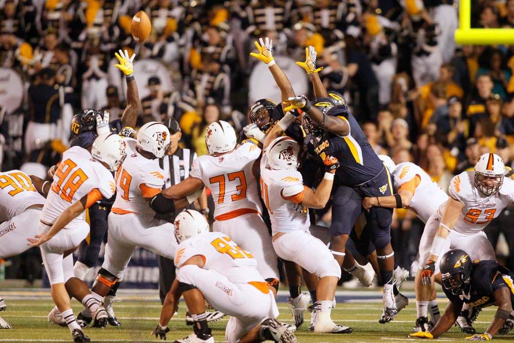 Bowling Green kicker Tyler Tate, 98, misses a field goal during the Battle of I-75 game.