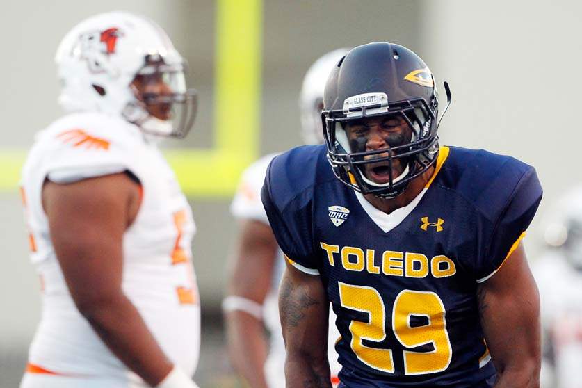 Toledo safety Jermaine Robinson celebrates after a third-down stop.