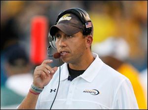 Toledo football coach Matt Campbell directs the Rockets from the sideline.