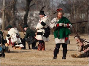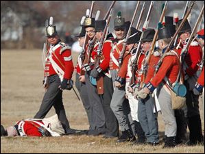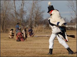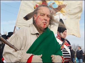 Ken Roberts leads his local LaCroix Militia unit into battle the River Raisin National Battlefield Park to the Monroe Multi-Sports Complex in Monroe, Mich.
