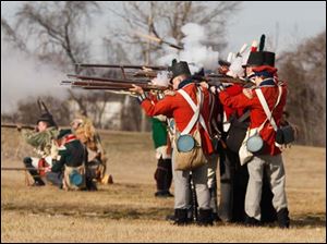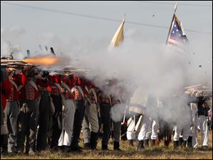 Guns are fired to kick off the 200th anniversary of the Battles of the River Raisin re-enactment.