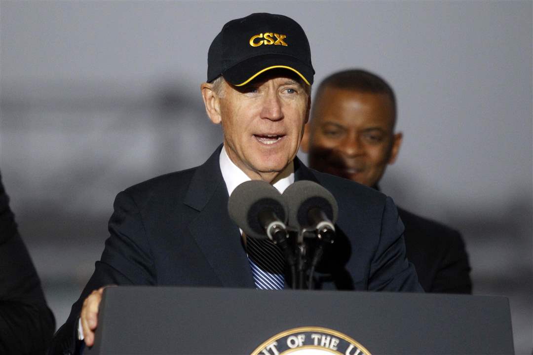 Vice President Joe Biden speaks to the crowd while touring CSX in North Baltimore on Wednesday.
